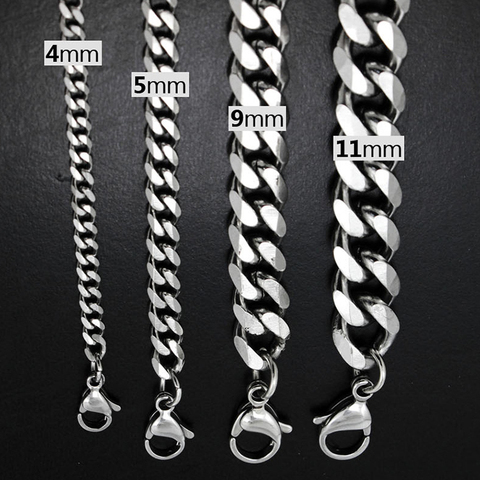 Yüksek kalite 3.6/5/7mm parlak cilalı paslanmaz çelik küba Link zinciri erkek bilezik ve kolye için Trendy stil ücretsiz poli çanta